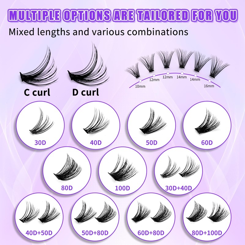 - 【Suitable to wear】LAKANAKU wispy lash clusters have thin and superfine band, lightweight and soft lashes that after wearing it you can hardly feel the fluffy lash clusters and it doesn't block your vision. When you blink, the lash band won't sting your eyelid area, and it's comfortable to wear all day long and easy to use even for beginner lash users.