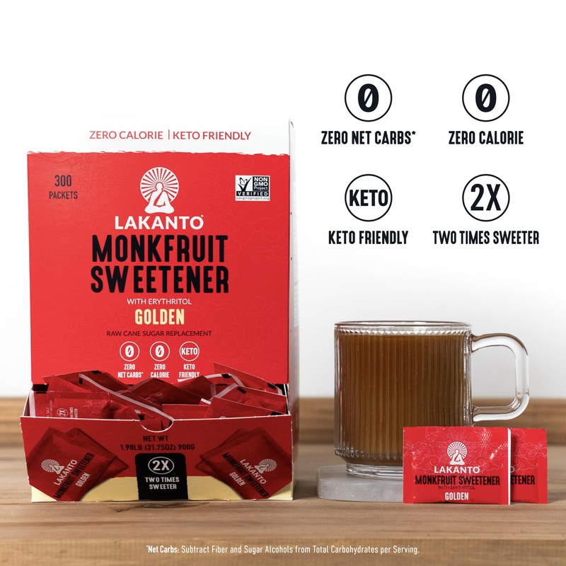Lakanto Golden Monk Fruit Sweetener with Erythritol Packets - 2X Sweetness of Raw Cane Sugar Replacement, Perfect for Coffee, Tea, Lemonade, Sweeten On the Go, Travel - 30 g Packet (300 Count)