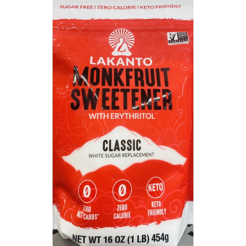Lakanto Monkfruit Sweetener 1:1 Sugar Substitute Keto Non-GMO White 16 oz Bag