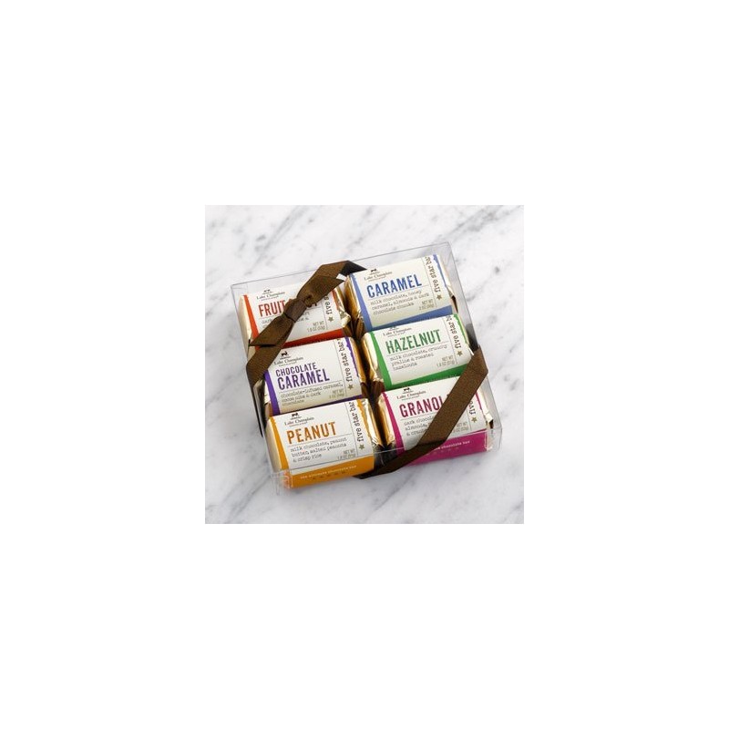 This Five Star 6-Pack makes for a great gift! Enjoy 6 of our popular Five Star Bars, packaged in a clear gift box. These are the ultimate treat! Flavors include: Hazelnut, Fruit & Nut, Caramel, Peanut, Chocolate Caramel, and Granola. Kosher and Fair Trade Certified.