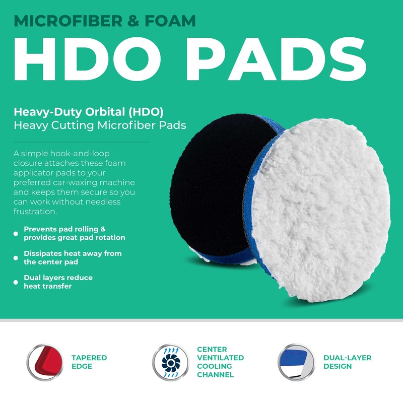 HDO pads incorporate the benefits of thick and thin pads as well as the advantages of a tapered profile and exact-fit-style pads. The dual-layer foam reduces lateral and horizontal movement, resulting in a reduction of molecular friction inside the pad, which increases durability by eliminating excessive heat and reducing foam fatigue. Each pad features a center cooling chamber that dissipates heat from the center of the pad, reducing the pad temperature. This design also offers even pressure distribution like an exact-fit pad, but the shape and profile give you the precision and safety of a tapered pad. The tapered edge prevents pad rolling and provides optimal pad rotation. These pads are great for use on curved and contoured panels.