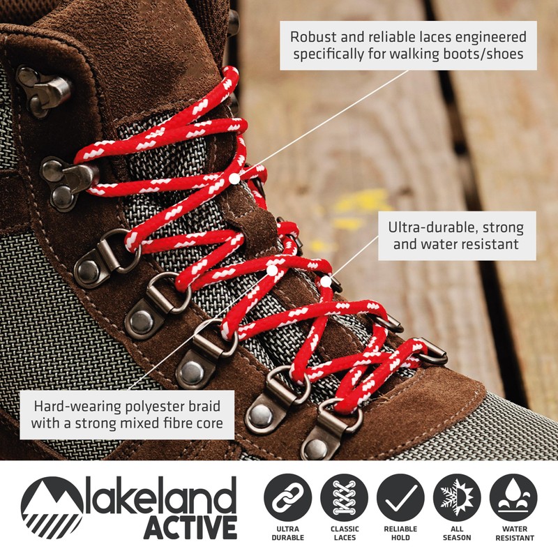 Lakeland Active Grasmoor Walking Boot Laces - Red-White - 160 cm - 63 inch (2 Pairs)