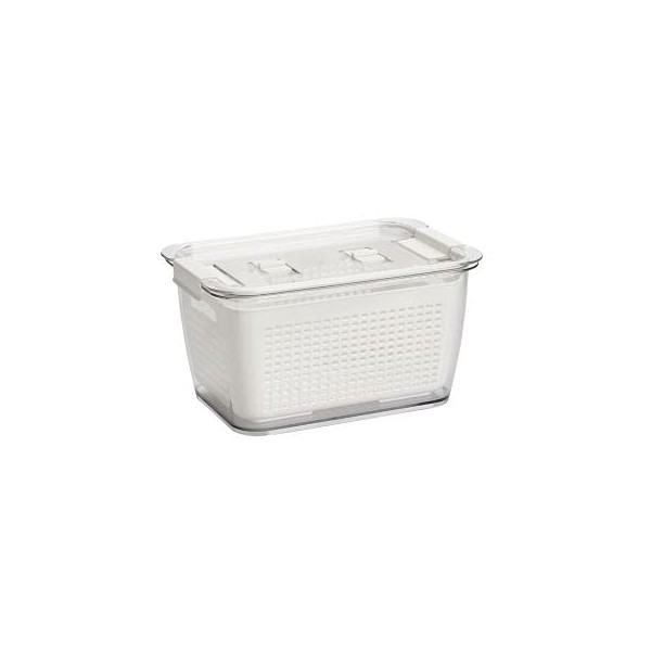 The white inner basket is perforated so any excess water will drip through it, draining your food, helping to keep it fresh and preventing any unwanted sogginess – and there’ll be no puddles on your fridge shelves either, as the water will be caught by the solid, transparent outer basket.