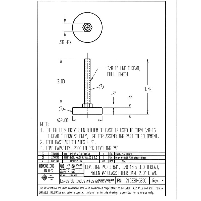 WARNING: This Phillips #2 under base must only be used for assembly driving the threaded shaft clockwise