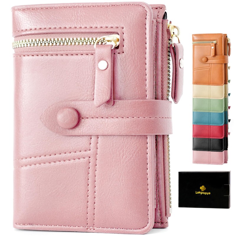 Lakpopya Women's Purse, 14 x 10 cm, Purse with Multiple Compartments, PU Leather with Coin Compartment, pink, Casual