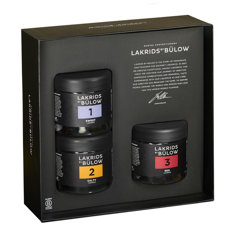 LAKRIDS BY BÜLOW - Gift Box - 3x150g - 1, 2 & 3 - Sweet, Salty & Red - Vegan Gourmet Liquorice Made in Denmark