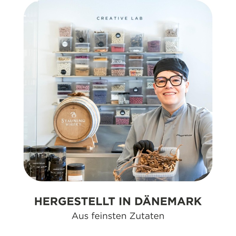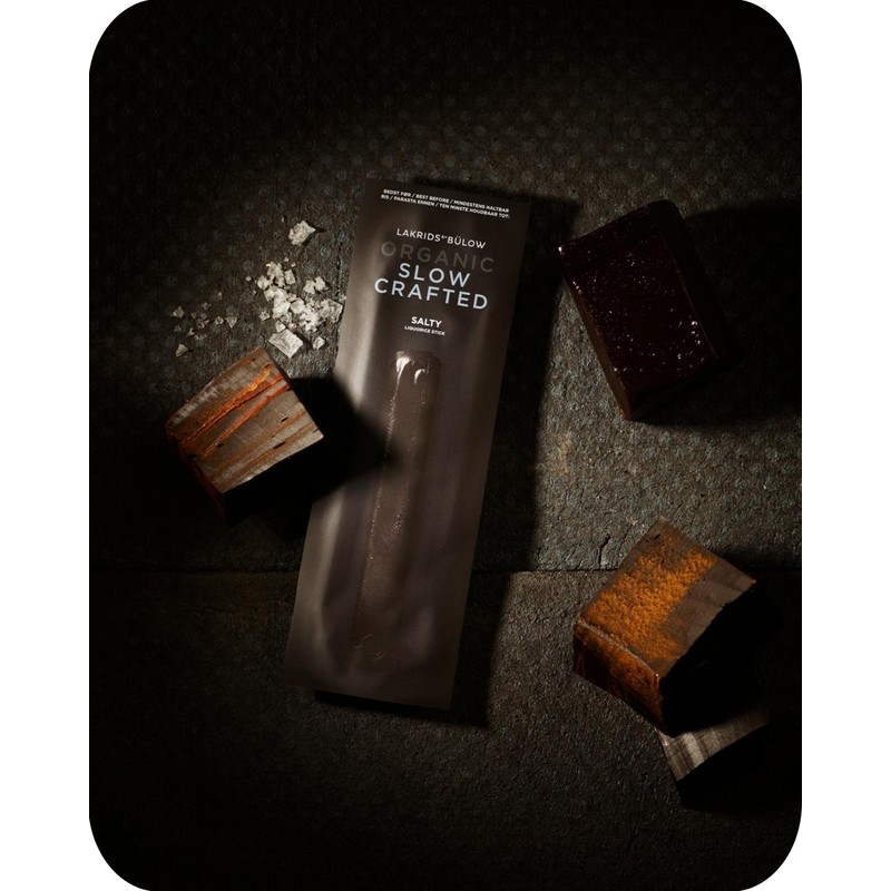 • SALTY STICK - Slow Crafted Organic Liquorice, cooked in an open pot for four hours and manually enriched with small crispy flakes of Maldon sea salt. An extraordinary taste experience.