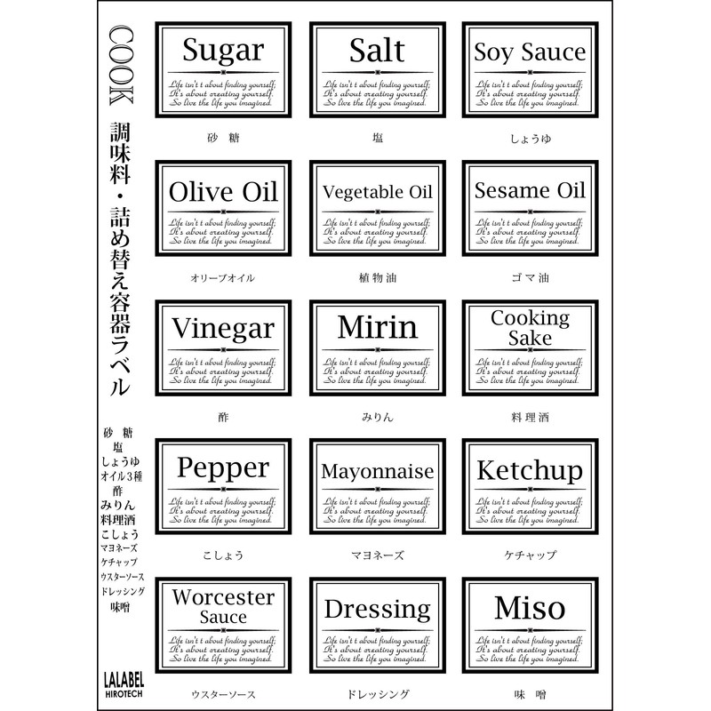 Lalabel Basic Condiment Labels for Refill Containers, Classical Design, 15 Count