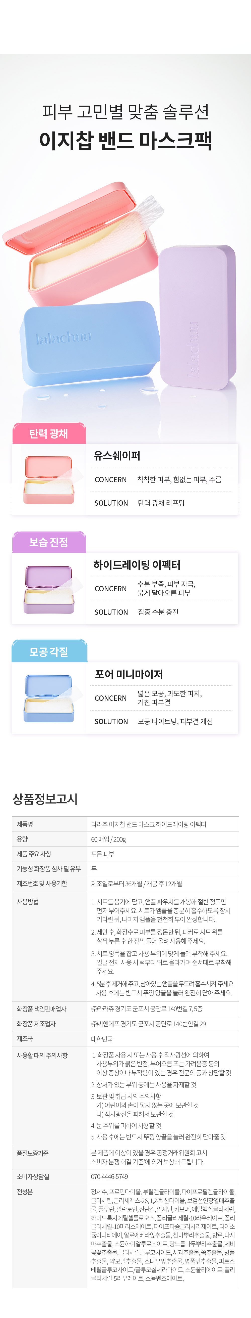 Lalachu 보습/진정 라라츄 이지찹 밴드 마스크팩 하이드레이팅 이펙터 60매 Moisturizing/Calming Lala Chew Easy Chop Band Mask Pack Hydrating Effect 60 Sheets