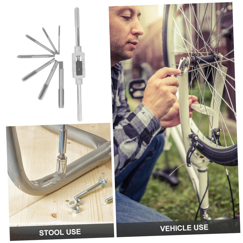 LALAFINA 1 Set 7pcs Thread Tap with Hand Wrench Tapping Tool for Precise Threading Tight Spaces Durable Design for Blind and Through Applications
