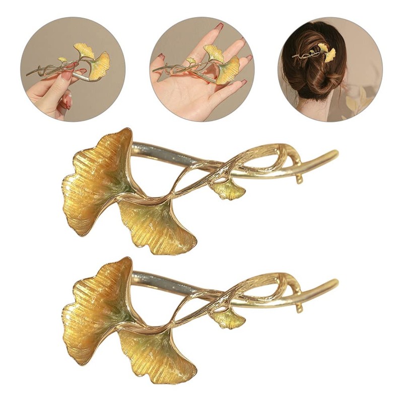 LALAFINA 2pcs Ginkgo Biloba Clip Womens Hair Clips Green Leaf Headband Gold Clips for Hair Leather Hair Barrette with Stick Hair Barrettes for Women Gold Hair Modeling Alloy Grip Miss