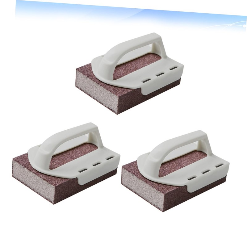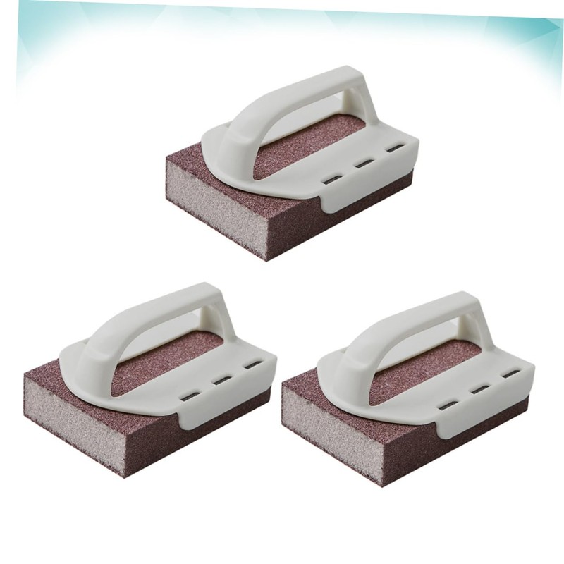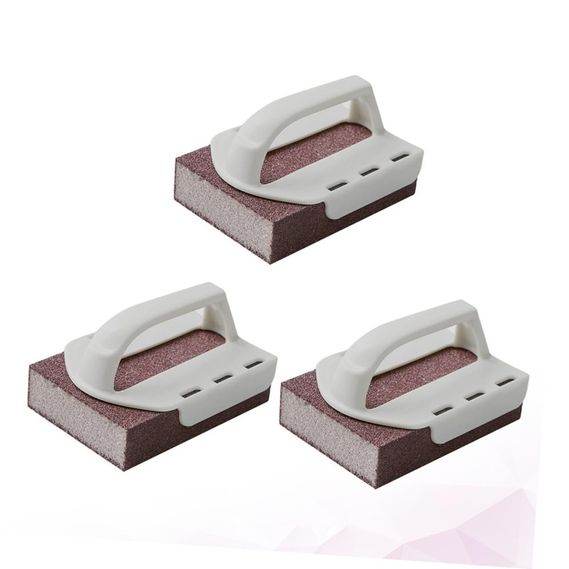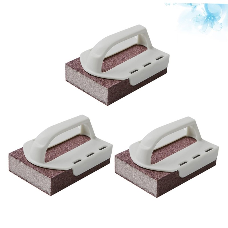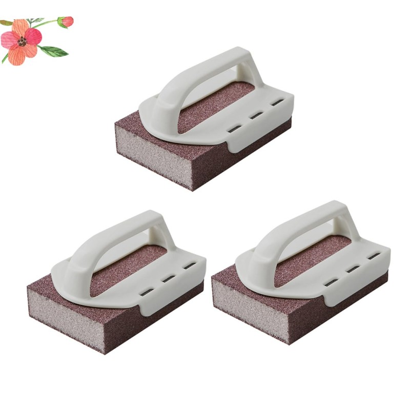 LALAFINA 3pcs Ergonomic Handle Emery Sponge Scrubbers Dish Washing Sponge Pad for Kitchen Strong Cleaning Power Grey