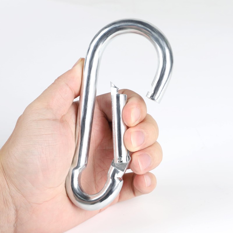 • M12/M10/M6 hook: We offer three sizes of stainless steel carabiners: M12, M10, M6. M12: 140 mm x φ12 mm, load capacity 550 kg; M10: 100 mm x φ10 mm, load capacity 400 kg; M6: 60 mm x φ6 mm, load capacity 120 kg.