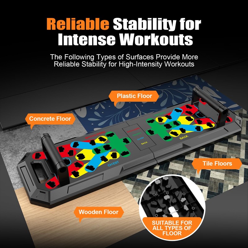 - Portable and Easy to Store: pushup board in the set is lightweight and can be folded 180 degrees. Whether used at home, in the office, or at the gym, this home workout equipment maintains stability on any floor surface. It is ideal home gym equipment for both men and women, easy to store and carry.