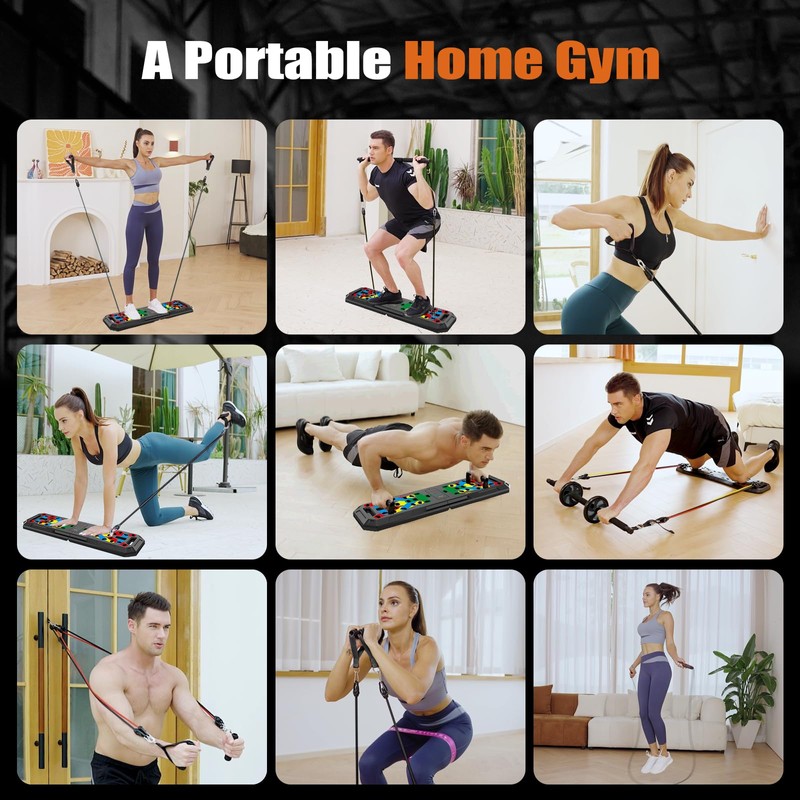 - Portable and Easy to Store: pushup board in the set is lightweight and can be folded 180 degrees. Whether used at home, in the office, or at the gym, this home workout equipment maintains stability on any floor surface. It is ideal home gym equipment for both men and women, easy to store and carry.
