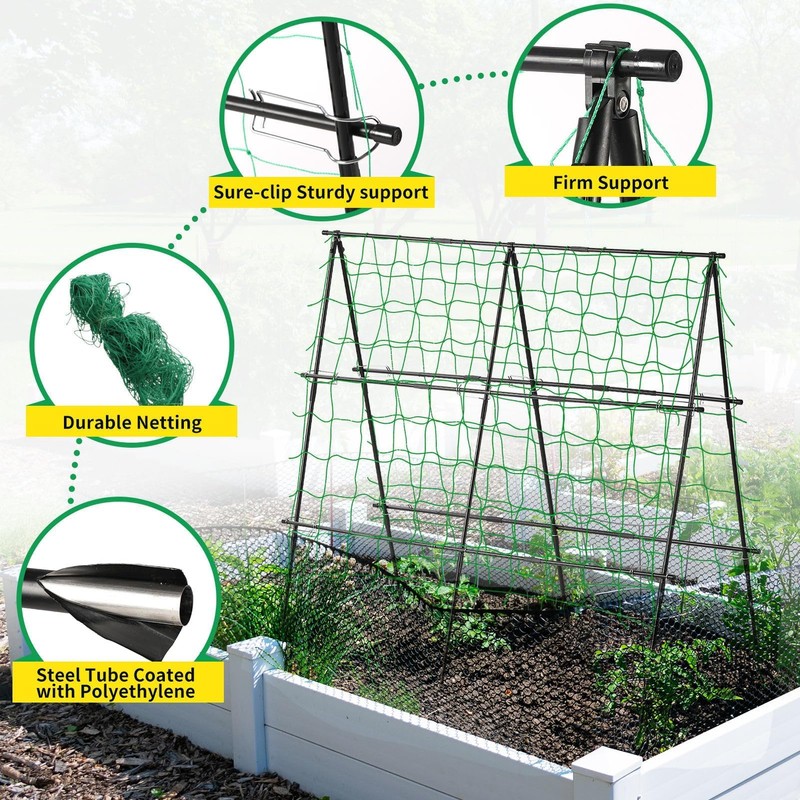 - Practical Accessories Included: The A-frame garden trellis comes with a trellis net to prevent plant and fruit droppings, facilitating easy harvesting. Additionally, two functional plant clips are included to secure and guide plants effectively. Perfect for gardeners looking to optimize plant growth and harvest convenience.