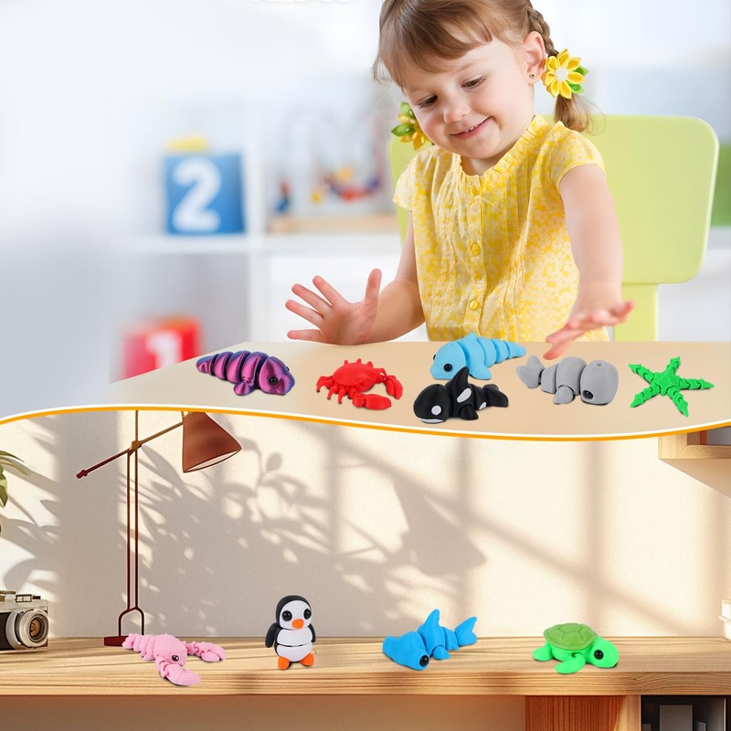 LALASTYLE 10PCS 3D Printed Sea Animals Set – Articulated Marine Figurines,Seal, Dolphin, Whale & More,Movable Fidget Toys Educational Ocean Decor (6-8cm)