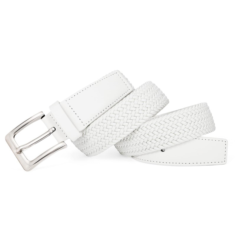 LALATCH Elastic Braided Leather Belt Mens Stretch Belt Woven Golf Belt for Casual Pants Jeans, Silvery Buckle / White, for Wasit 32"-37"