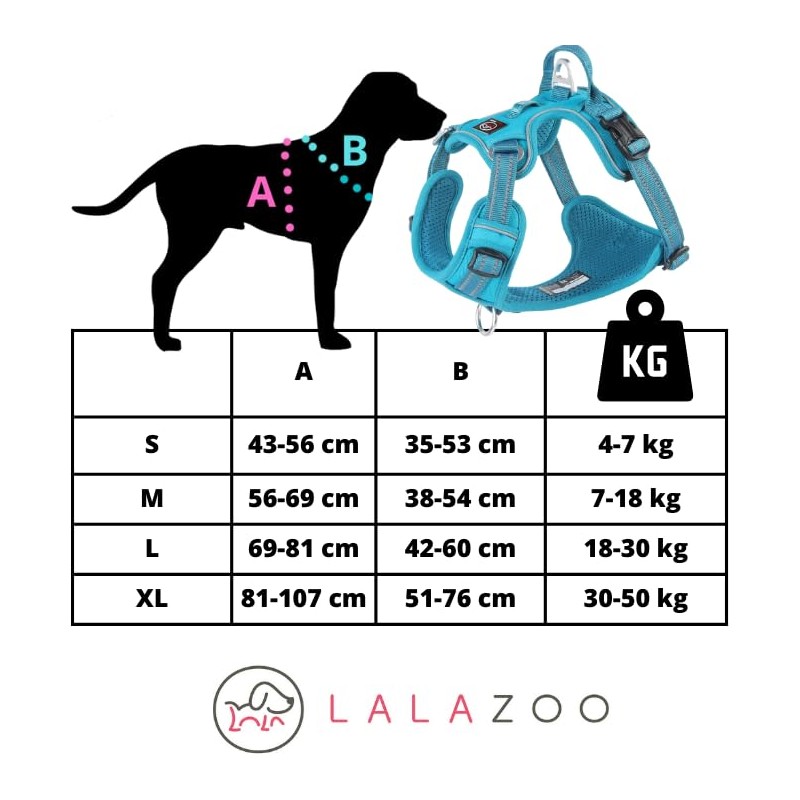 - Premium no-pull dog harness - comfortable and safe - Padded, pressure-free chest harness made of durable, water-repellent Oxford fabric with breathable mesh. Ideal for small, medium & large dogs, puppies and sensitive four-legged friends. Perfect for walking, training & outdoors.
