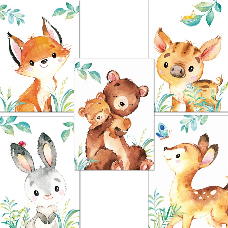 - 💖 Magical nursery pictures for girls and boys: these cute forest animals put a smile on babies and children face, stimulate your little one's imagination and quickly become best friends! Your child will love these posters!