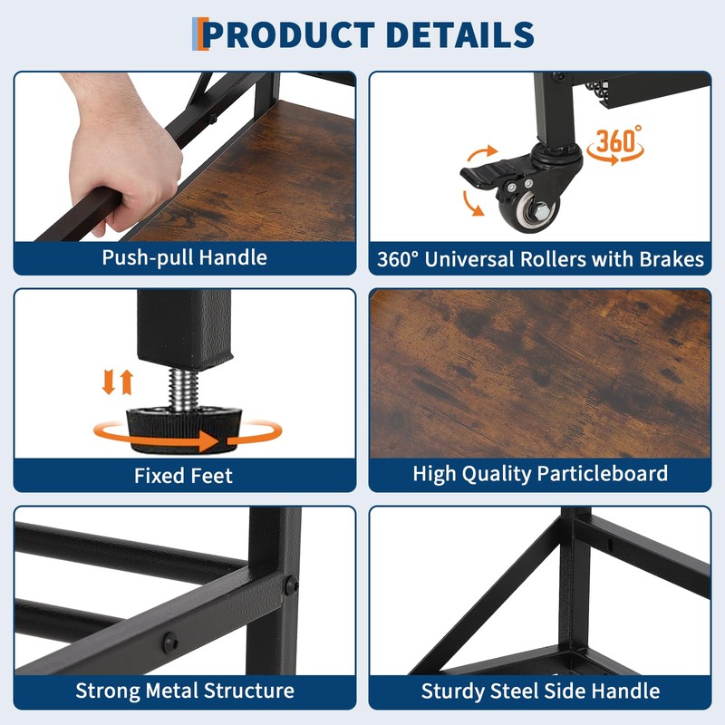 • Effortless Mobility: Move your compact printer cart anywhere you need it with four smooth-rolling, 360° rotating wheels. Built-in brakes keep the cart securely in place, giving you both mobility and stability in your home, studio, or office printing setup