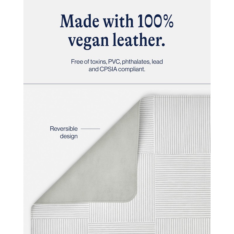 - VEGAN LEATHER: Crafted from non-toxic materials, the durable vegan leather spill mat is safe, stylish, and built to last, offering a sustainable solution for busy families. This splat mat's washable design makes clean-up quick & easy.
