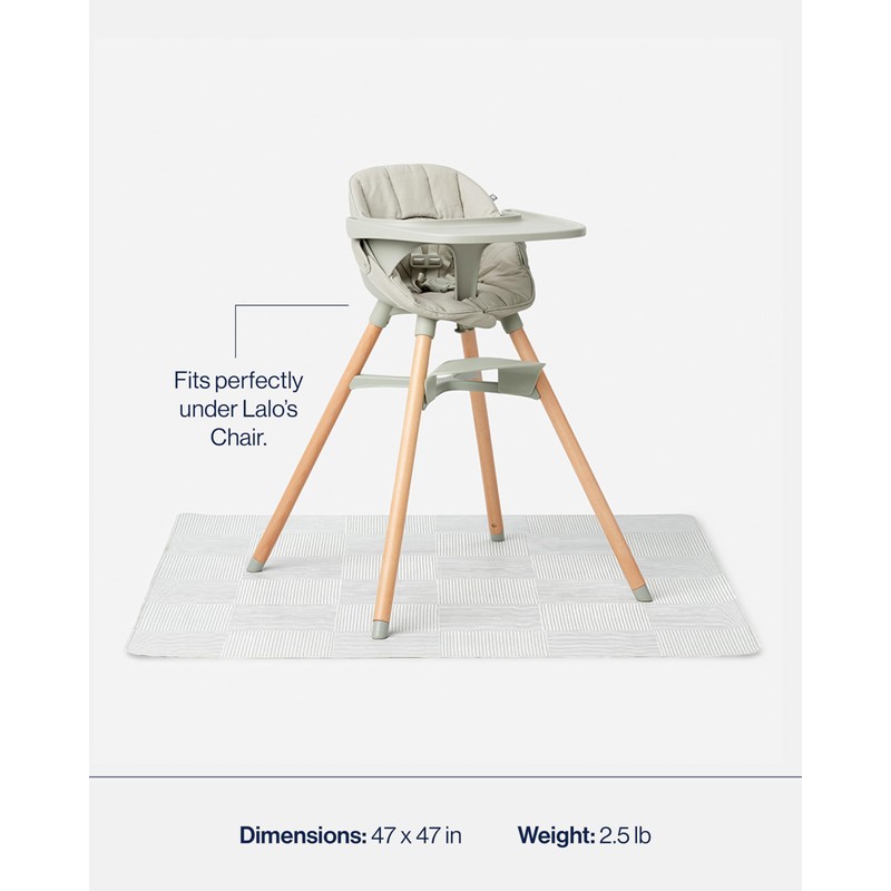 - REVERSIBLE & VERSATILE: Our splat mat is fully reversible, offering double the use for easy cleanup during mealtime or playtime. Sized at 47" x 47", it fits perfectly under the Lalo Play Kit & The Chair, providing reliable floor protection for any space.