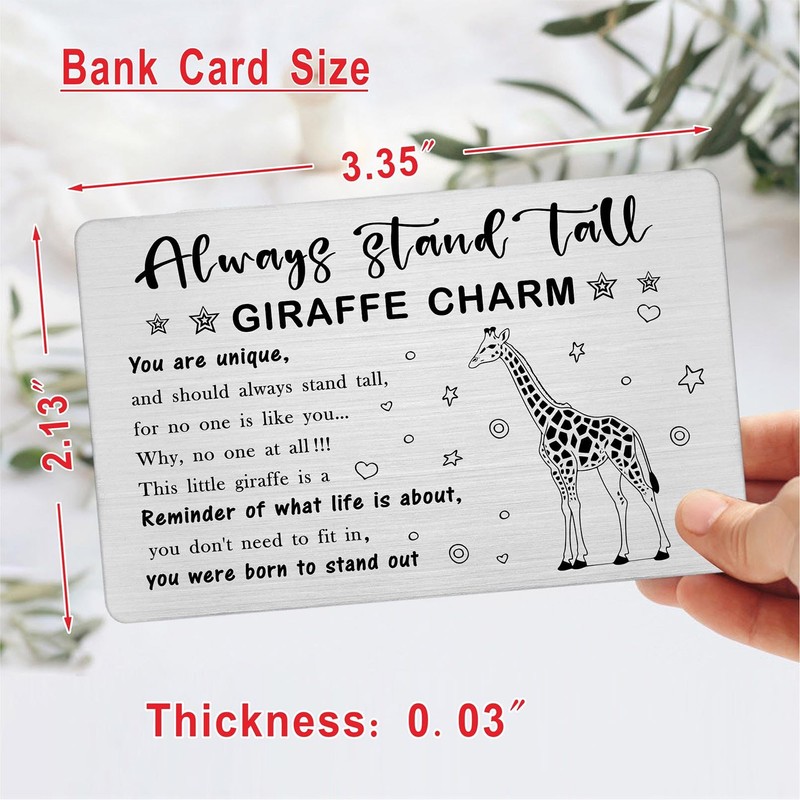Laluminter Lucky Little Giraffe Charm Stainless Steel Wallet Card Inserts - Good Luck Token with Giraffe Design - Always Stand Tall Inspirational Gifts for Men Women - Christmas Birthday Cards