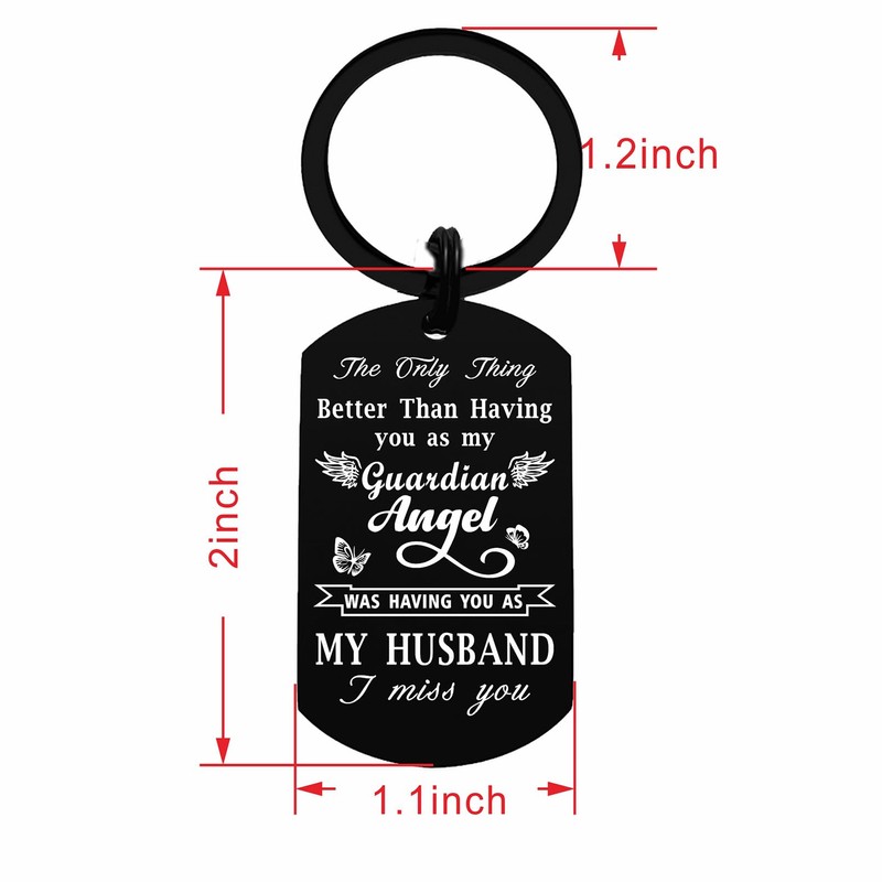 - Double Sides Laser Engraved - One side engraved with the saying "The only thing better than having you as my guardian angel was having you as my husband, I miss you", while the other side engraved with "Forever in my heart"