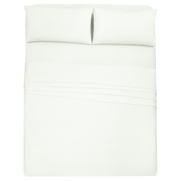 LAMANNI Jersey Sheet Set - Soft, Deep Pockets, Cooling Effect, Expandable - 4 Piece Bedding Set (White, King)