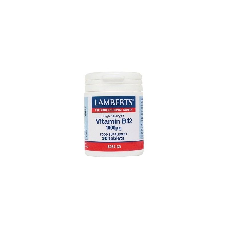 Η Lamberts B12 1000 mcg s a dietary supplement that meets the body's daily needs for vitamin B12. Each tablet contains 1000 mcg of vitamin B12 in the active form of methylcobalamin, which corresponds to 40,000% of the Recommended Daily Intake for a healthy adult.