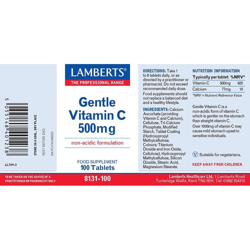 Lamberts Gentle Vitamin C 500 mg 100 tabs