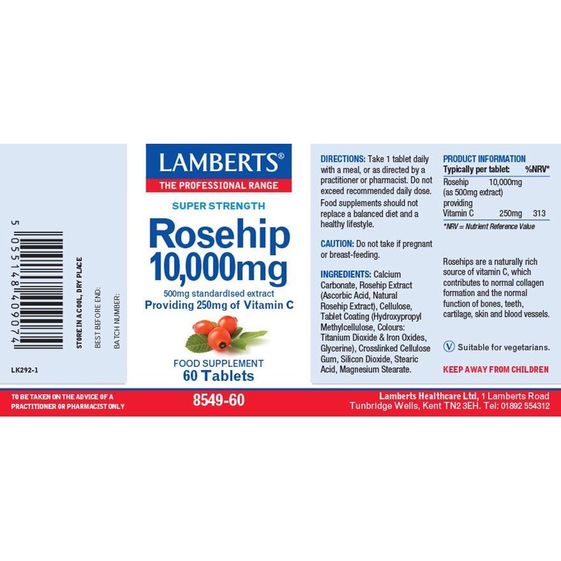 The Lamberts Rosehip is a standardized rosehip diet supplement. Rosehip is a rich source of Vitamin C which contributes to the normal formation of collagen for normal bone and cartilage function, as well as the normal function of the immune system. *