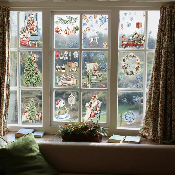 • 🎅【Reusable】🎄 These Christmas window stickers are made of high-quality PVC and can be reused. Simply keep the original backing sheets. To store them for next season, place the stickers between laminating sheets and store them in a large ziplock bag.