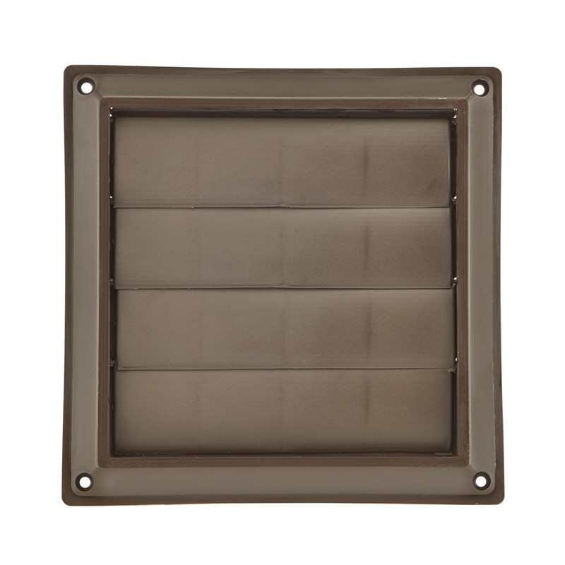 Brown plastic louvered vent with 6" opening.