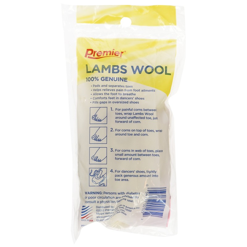 Lambs Wool Premier Ideal for toe dancer's shoes. Footcare Lambswool provides soft pressure protection for toes. Fine washable wool cushions corns and abrasions against further damage.