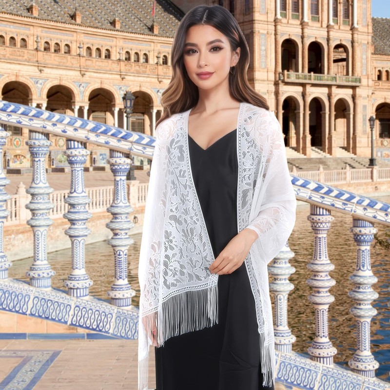- Unique design:The lace shawls for women features an intricate floral crochet design, which is both trendy and timeless. The classic tassels add a vintage flair, setting you apart in any crowd while