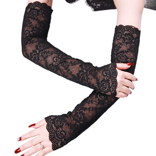 Lamerry Arm Cover, Mine Type, Subculture Type, Gothic Lolita, Lace, Arm Cover, UV Protection, Sunscreen, Women's, Black, Black