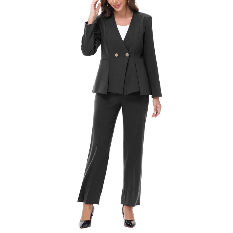 Upgrade your wardrobe with our Women's 2 Piece Collarless Solid Blazer Pant Suit Set.