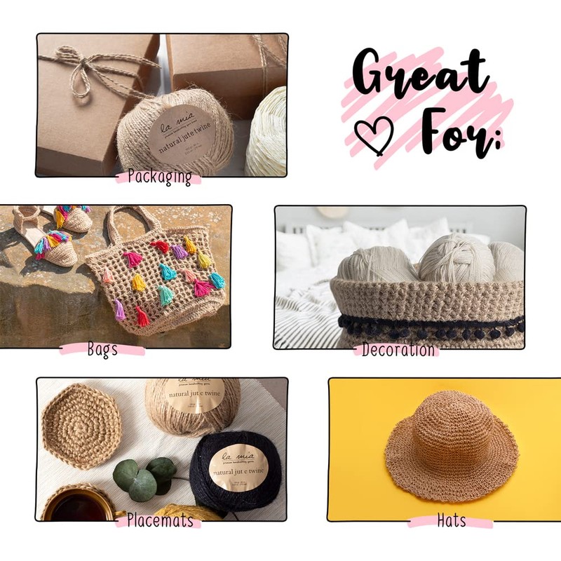 Lamia 2 Pack 100% Natural Jute Twine, Total 550 Feet 7 Oz. Best for DIY, Arts and Crafts, Industrial Packing, Rope String, Decoration and Gardening Applications, Black - L213