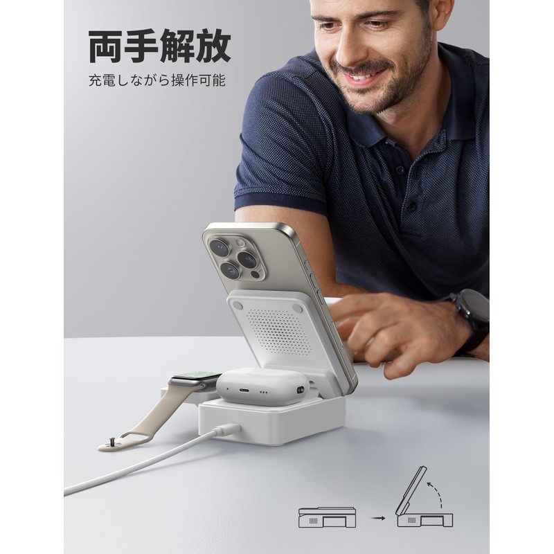 Lamicall 3-in-1 Magsafe Charger, Foldable, Compact, Wireless, Magsafe Charger, Smartphone, Tabletop, Quick, Simultaneously Charging, Stand, Magnet, Portable, Portable, Desk, Business Trip, Travel