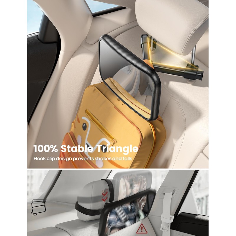 Lamicall Baby Car Mirror for Backseat - [2025 Safest Triangle Hook Clip] Acrylic Car Seat Mirror for Rear Facing, 360° Rotation & Wide Clear View, 3S Quick Install, Newborn Baby Essentials Accessories