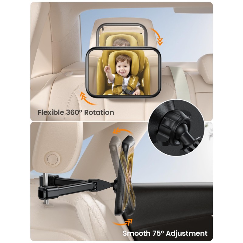 Lamicall Baby Car Mirror for Backseat - [2025 Safest Triangle Hook Clip] Acrylic Car Seat Mirror for Rear Facing, 360° Rotation & Wide Clear View, 3S Quick Install, Newborn Baby Essentials Accessories