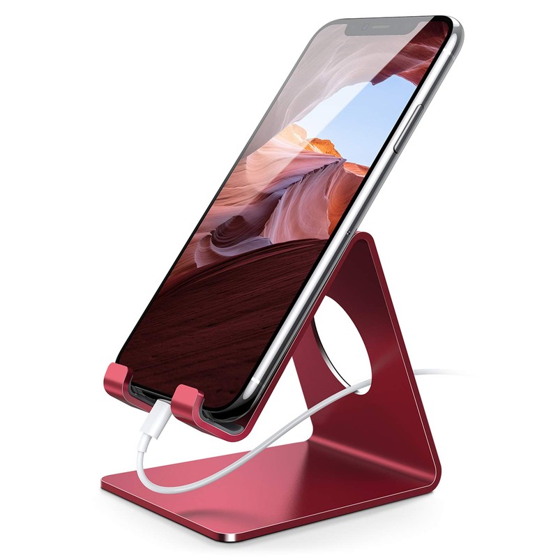Lamicall Cell Phone Stand, Phone Dock : Cradle, Holder, Stand, Compatible with Phone 12 Mini 11 Pro Xs Xs Max Xr X 8 7 6 6s Plus 5 5s 5c All Android Smartphone Charging, Accessories Desk - Red