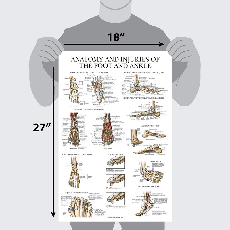 Laminated Anatomy and Injuries of The Foot and Ankle Poster - Anatomical Chart of Foot and Ankle Joint - 18" x 27"