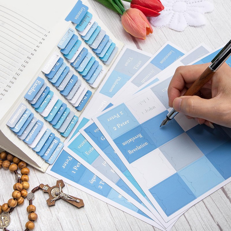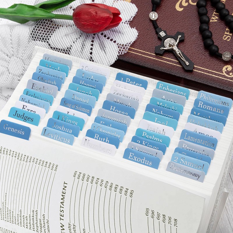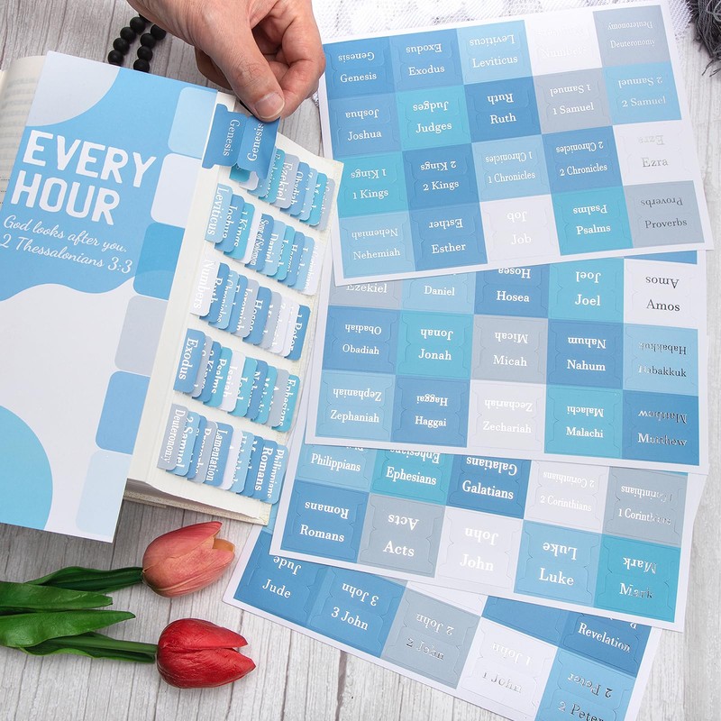 - Easy to Stick: Each Bible index tab is self-adhesive, just align it with the provided guide and stick it to the Bible page. These Bible stickers are pre-scored in the middle for easy folding.