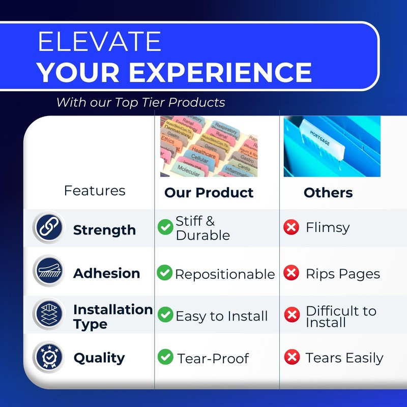 - Includes Alignment Card for Perfectly Aligned Tabs: Our tabs are easy to install in a perfect alignment using our tabs alignment system. Each tab includes the location and page number for super easy installation.