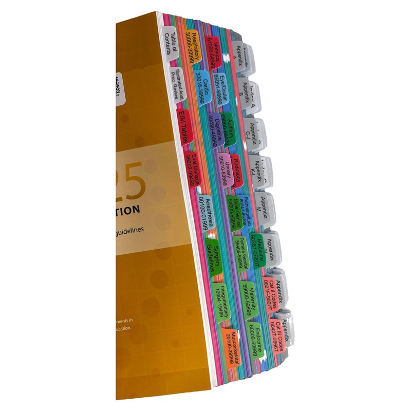 - 50 Color-coded tabs: Highlight the most important sections with over 50 colored tabs for the CPT 2025. The colors match the section for easy reference.