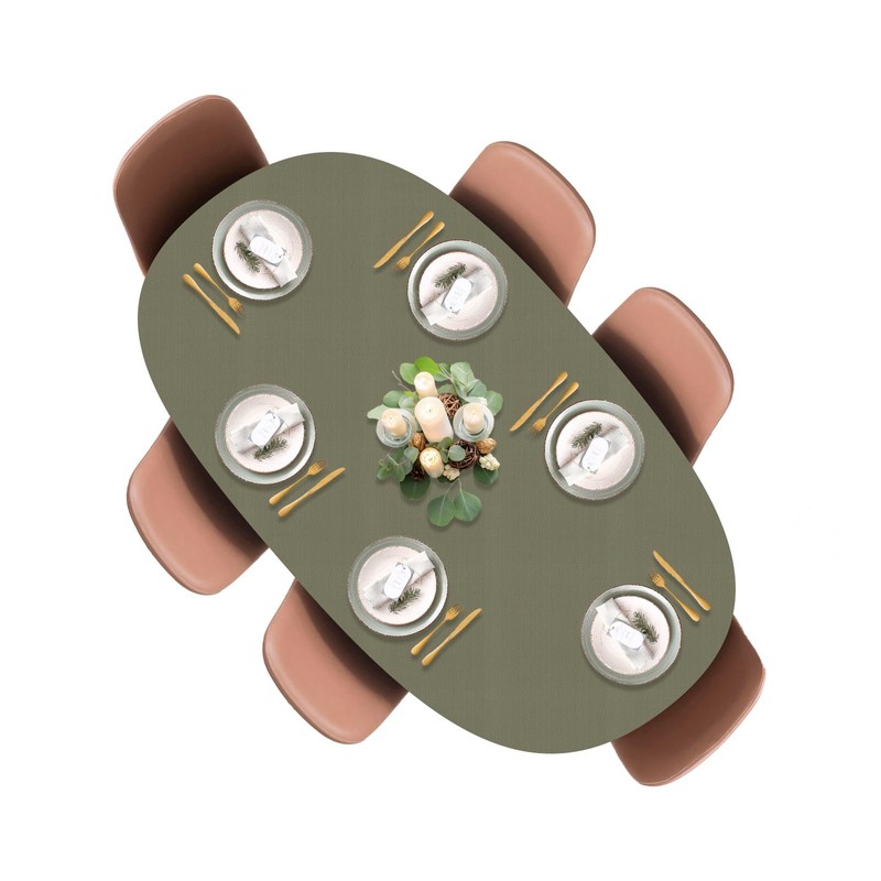 LAMINET Elastic Fitted Table Cover - Basketweave (Green) - Oblong/Oval - Fits Tables up to 48 x 68”