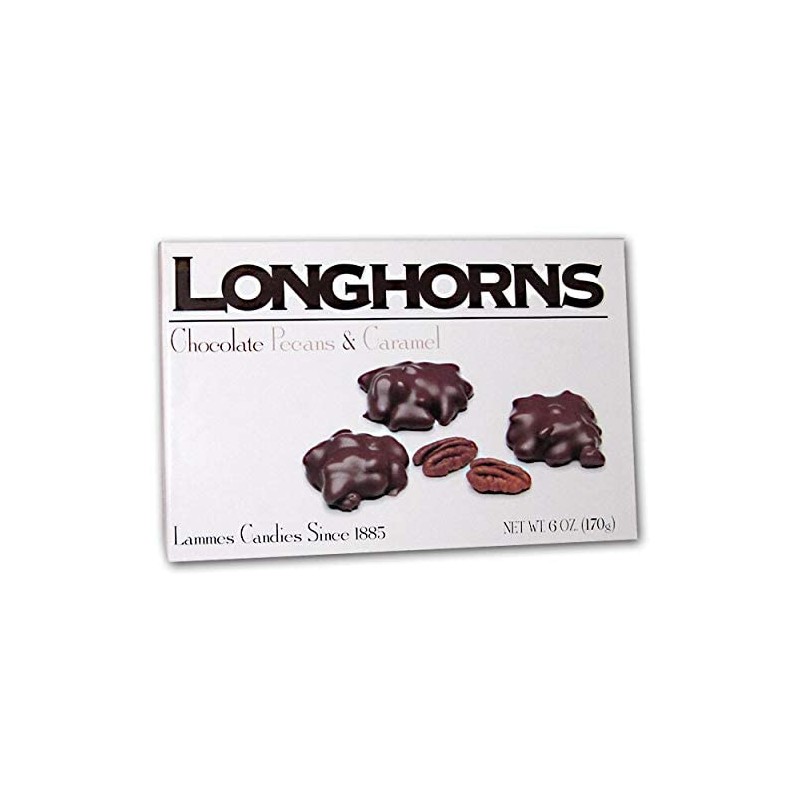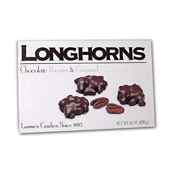 - Lammes Texas Based Handmade Chocolates Longhorns 6 Ounces Milk Chocolate Carmel and Pecan Turtles